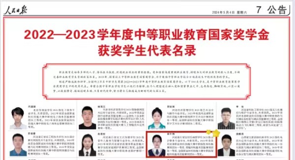 高宇翔的优秀事迹刊登在2024年5月4日《人民日报》